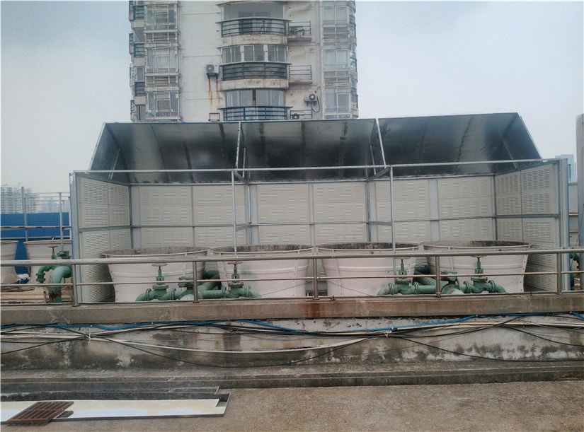 濟(jì)源天壇辦事處冷卻塔距離居民樓僅5米左右。對(duì)現(xiàn)場(chǎng)進(jìn)行的監(jiān)測(cè)表明:冷卻塔噪聲對(duì)一墻之隔的居民環(huán)境噪聲的貢獻(xiàn)較大。受委托,我司對(duì)該項(xiàng)目進(jìn)行治理。
