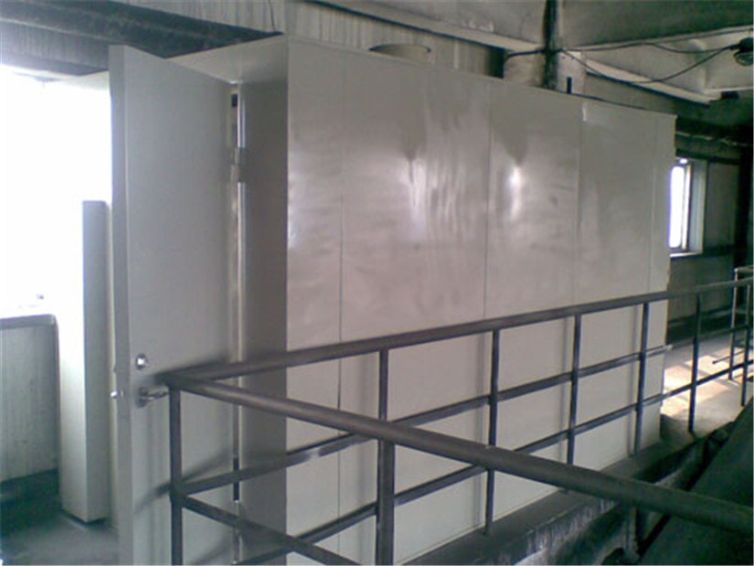 作為一種常規(guī)的噪聲控制方法,靜音室廣泛應(yīng)用于隔離車間噪聲,常見的有固定式和活動式兩種。本項(xiàng)目中采用活動式結(jié)構(gòu)。結(jié)構(gòu)上應(yīng)不影響場地布置與生產(chǎn)操作,容易拆裝和可觀察車間生產(chǎn)情況等。