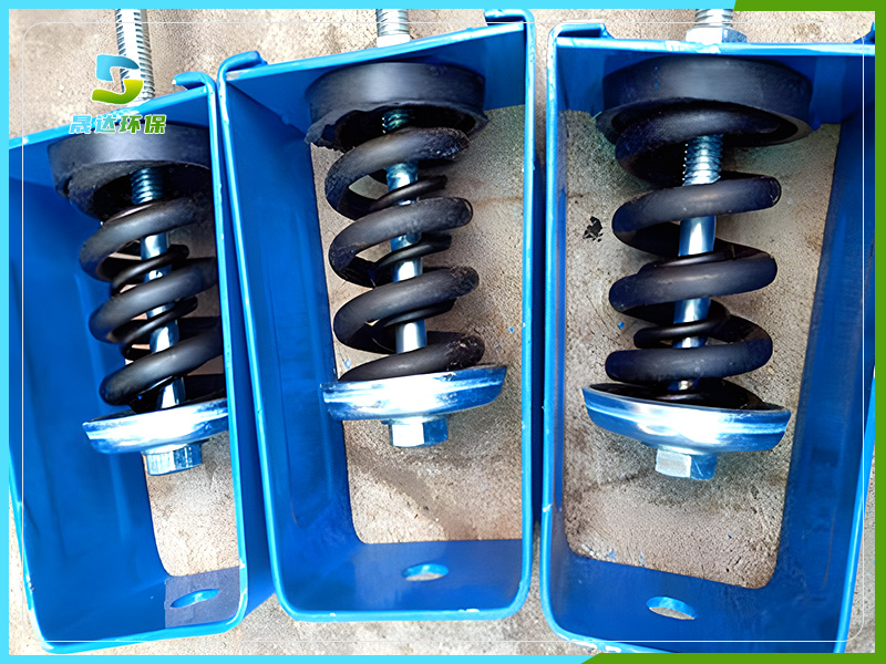 吊架減振器,采用特制的阻尼材料與特制的彈簧相結(jié)合,以金屬?gòu)椈蔀橹?,具有自振頻率低,阻尼適當(dāng)、隔振降噪效果明顯的功能。在保證隔離中低頻噪聲時(shí)的良好效果同時(shí)避免高頻失效現(xiàn)象。
